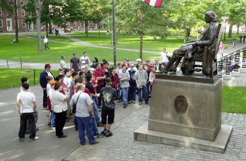 Du khách tham quan Trường ĐH Harvard - Ảnh: AFP
