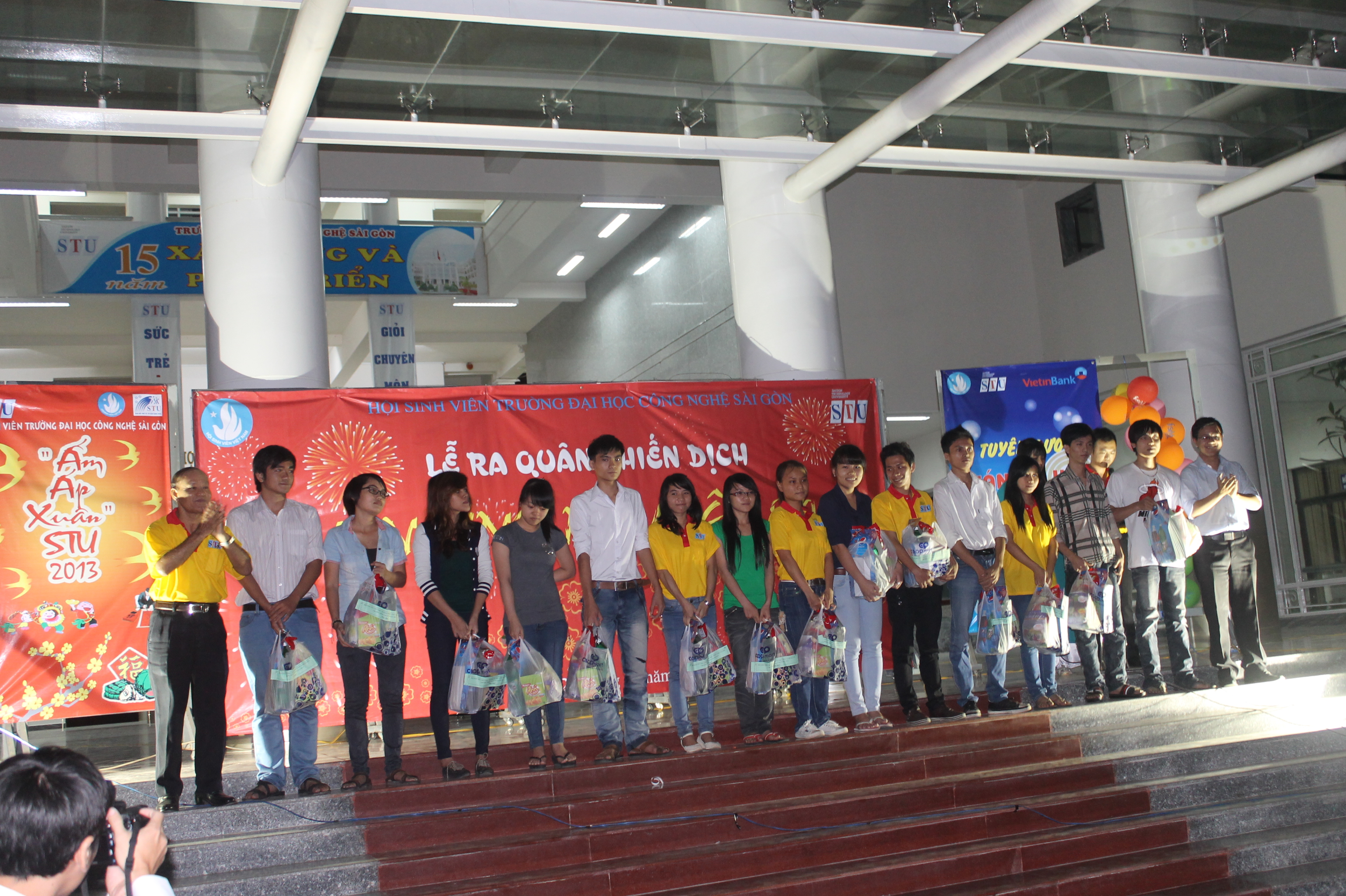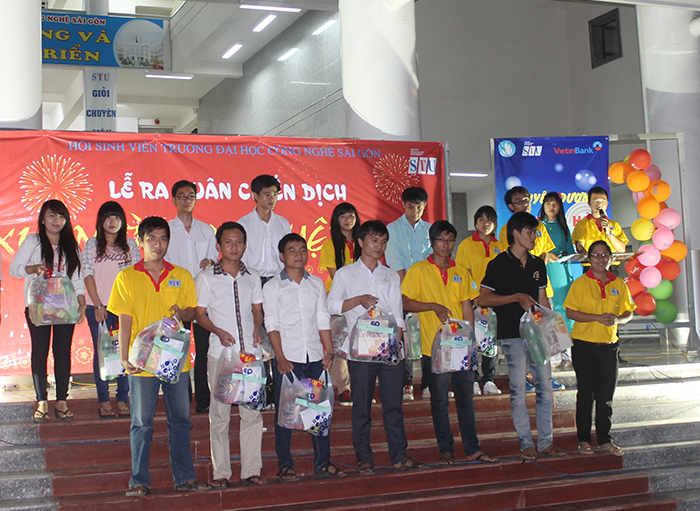 Cập nhật 28/01/2013 - 03:01:20 PM (GMT+7)Ngày 25/01/2013 Hội sinh viên Trường ĐH Công Nghệ Sài Gòn tổ chức lễ ra quân chiến dịch Xuân Tình Nguyện 2013 và tuyên dương cán bộ Hội tiêu biểu năm học 2011-2012.